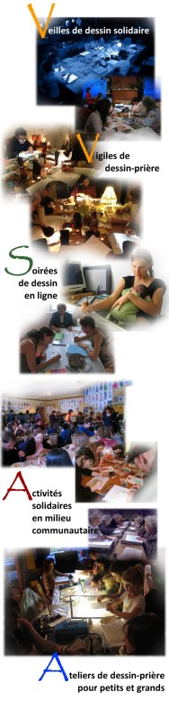 Dessiner, sans attentes ni souci de performance artistique, sans idées préconçues, dans le seul but d’être pleinement présent à ce que nous dessinons, nous remet en contact avec une forme d’intériorité dans laquelle la prière jaillit plus spontanément.