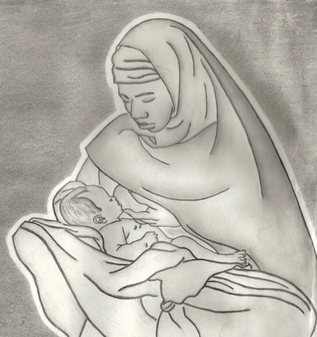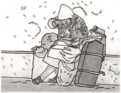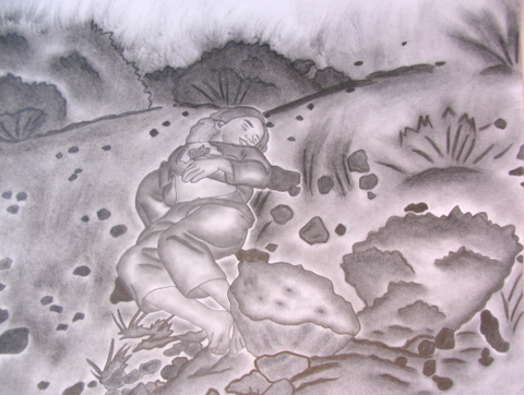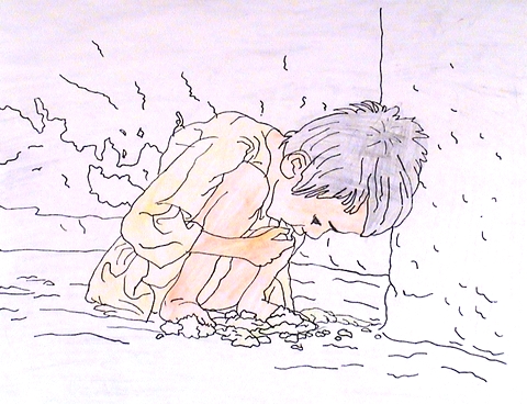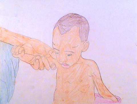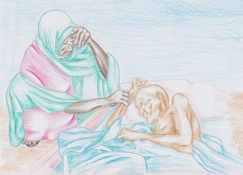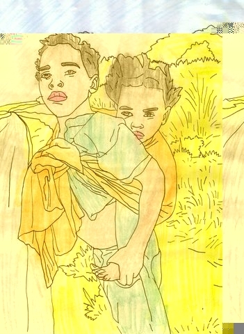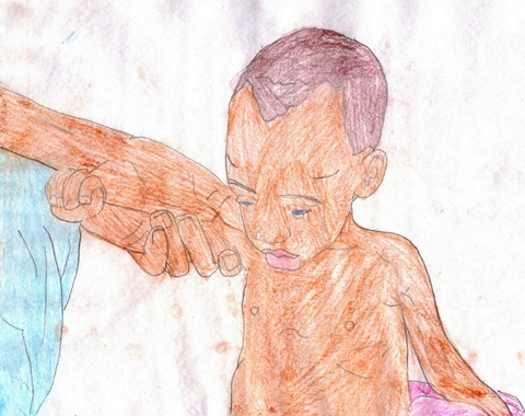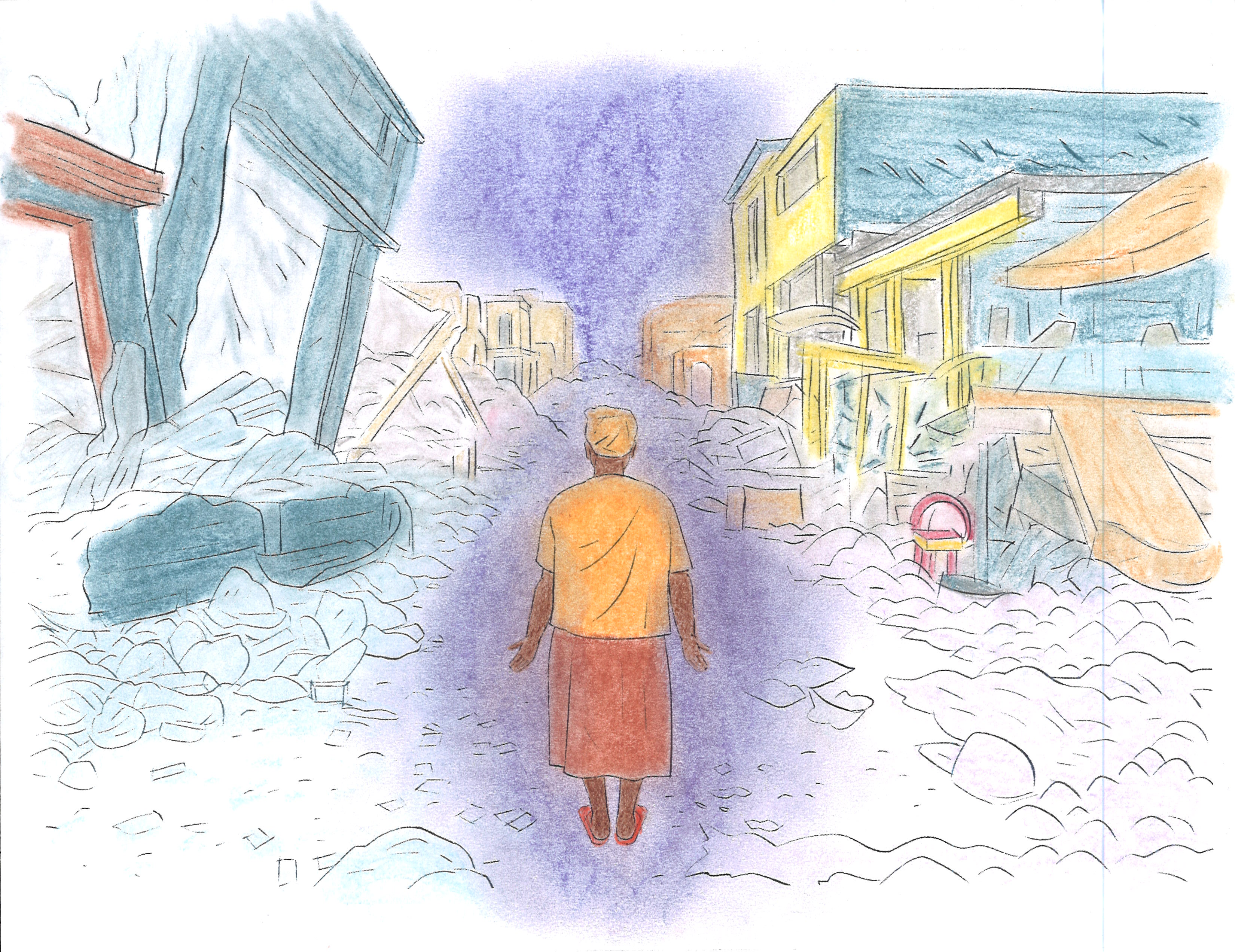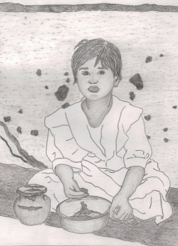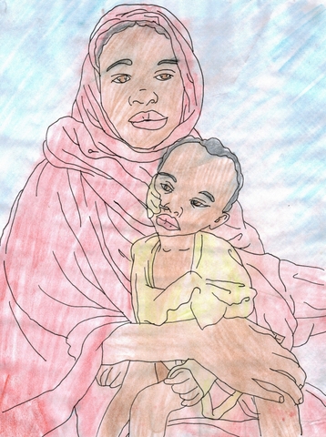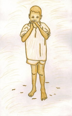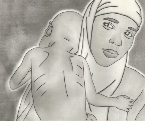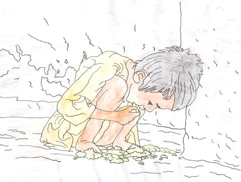 Dessin-prière pour toutes les personnes qui vivent la détresse à cause de l’extrême pauvreté, la famine et les catastrophes naturelles.